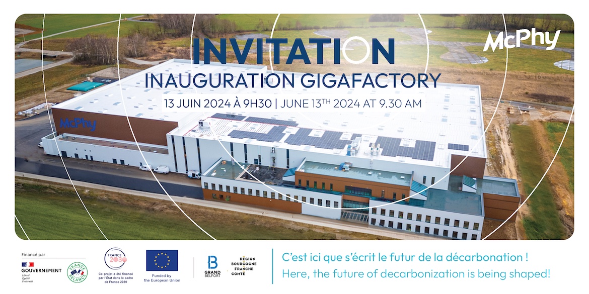 Je souhaite participer à l'inauguration de la Gigafactory de McPhy qui aura lieu le 13 juin prochain.
